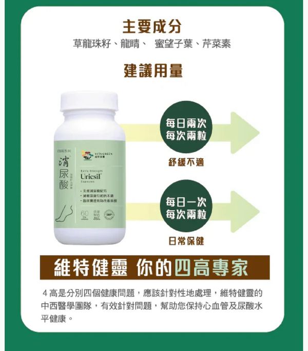 維特健靈 消尿酸 (10粒裝) Uricsil vitagreen 痛風