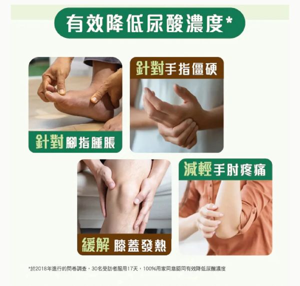 消尿酸蘊含多種天然中西草藥成份,有效降低血液尿酸濃度,舒緩關節不適問題。
