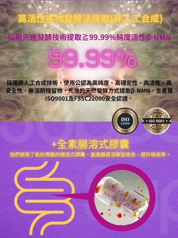 NMN逆齡王-SUPPOO森保寶NMN-18000+PQQ 天然酵母NMN逆齡王60粒抗胃酸腸溶式膠囊-德國及瑞士檢測機構驗證純度達99.99%