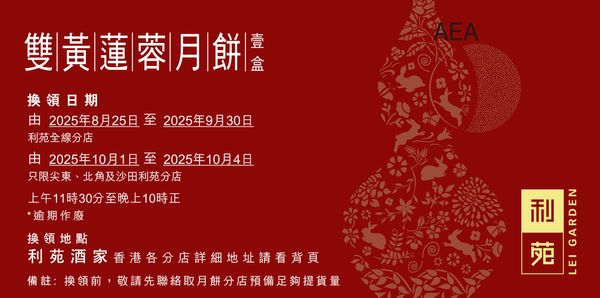 利苑-1 張 - (禮券) 雙黃蓮蓉月餅【憑券換領,不設送貨】