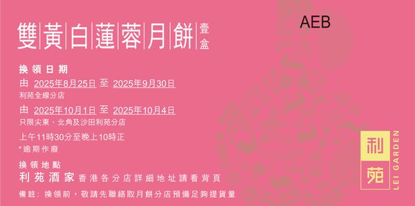 利苑-1 張 - (禮券) 雙黃白蓮蓉月餅【憑券換領,不設送貨】