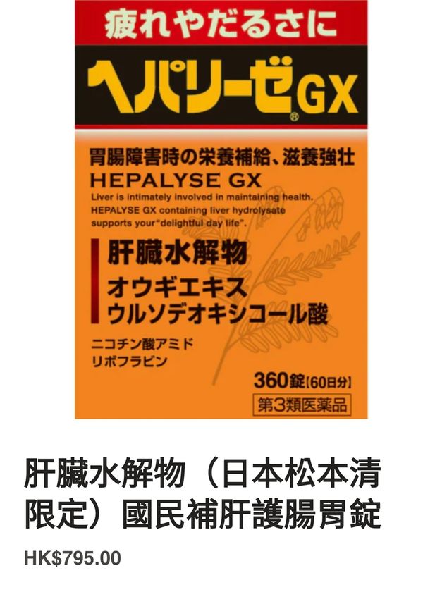 日本國民補肝藥 。疲勞和乏力 胃腸功能下降時的營養