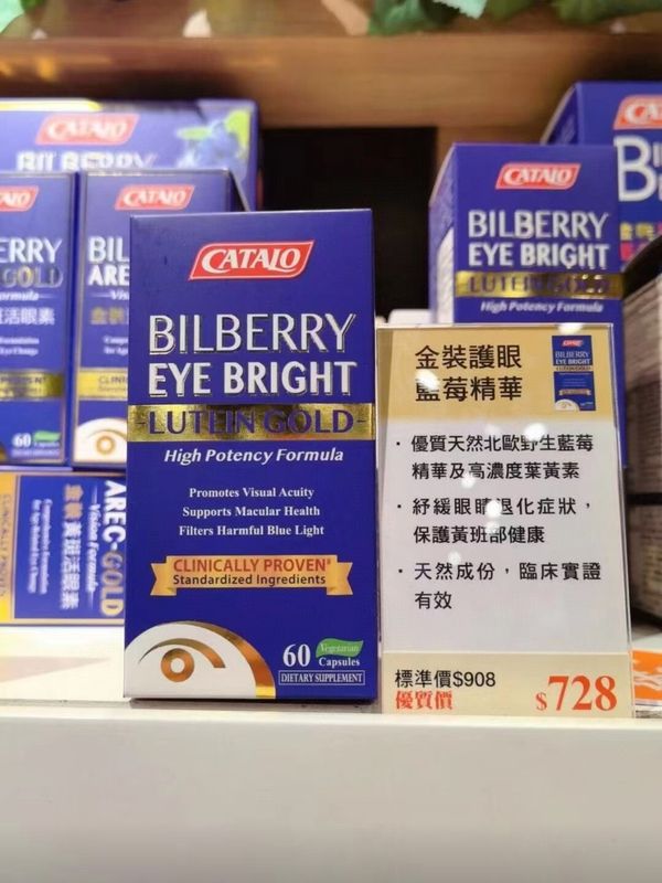 CATALO 家得路 金裝護眼藍莓精華 60粒 全新日期批發價售 (屬保健品 维他命 痛風 滋補 失眠 降三高 經痛 頭痛 傷風 感冒 發燒 胃藥 護骨 護骨素 護眼 血壓 護心)