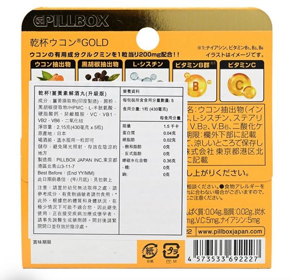 英文名稱:PILLBOX Turmeric Gold Upgrade 5 capsules