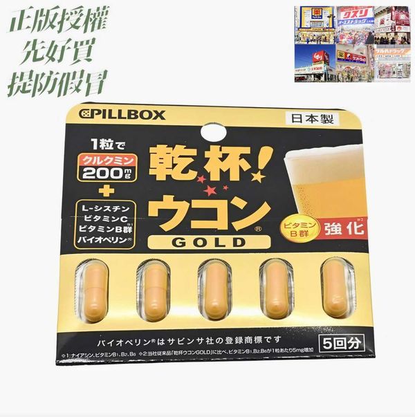PILLBOX 乾杯!薑黃素 解酒丸 升級版 5粒(屬保健品 中药 排毒 血管 流感 止痛 止咳化痰 維他命 血糖 痛風 失眠 降三高 傷風 感冒 發燒 胃藥 護骨 老人 嬰兒 孕婦 護肝 )