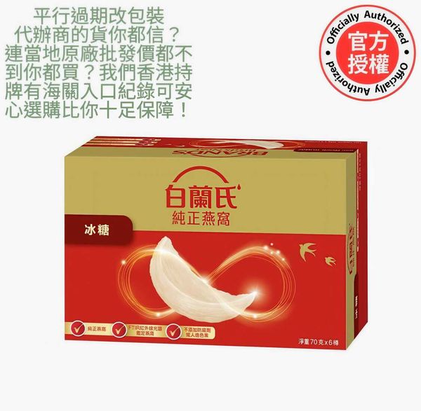 白蘭氏-冰糖燕窩(6支裝)($168成本都不到代辦商過期貨改包不是正廠小心受騙,我地先給你保證)上等純正燕窩#養顏 潤潤肺 無添加 70克x6樽(屬保健品 流感 止咳化痰 失眠 傷風 感冒 發燒)