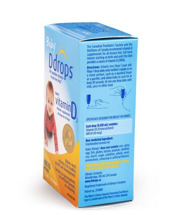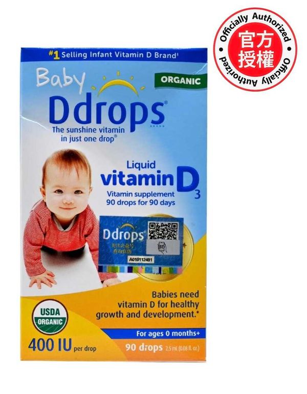 Baby Ddrops 婴兒維他命D3滿劑 (90滴) 2.5毫升 預防佝僂病(屬保健品 中药 排毒 血管 流感 經痛 頭痛 傷風 感冒 發燒 護骨 嬰兒 孕婦 兒童 免疫力 護眼 血壓 護心)