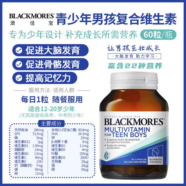 BLACKMORES 男性青少年多元維生素60粒 復合維生素(屬保健品 中药 排毒 流感 止痛 止咳化痰 維他命 增高 血糖 痛風 青春期 頭痛 傷風 感冒 發燒 護骨 嬰兒 孕婦 兒童 )