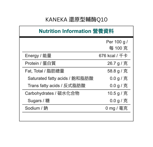 - KANEKA原廠專利,全球唯一商業化還原型Q10原料供應商