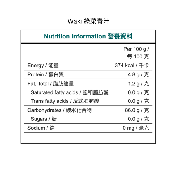 WAKi 綠菜青汁不僅含有大麥幼葉,還添加羽衣甘藍與卡姆果,提供更全面的營養補充與美容保健效果,是市面少見的「多效合一」青汁產品。