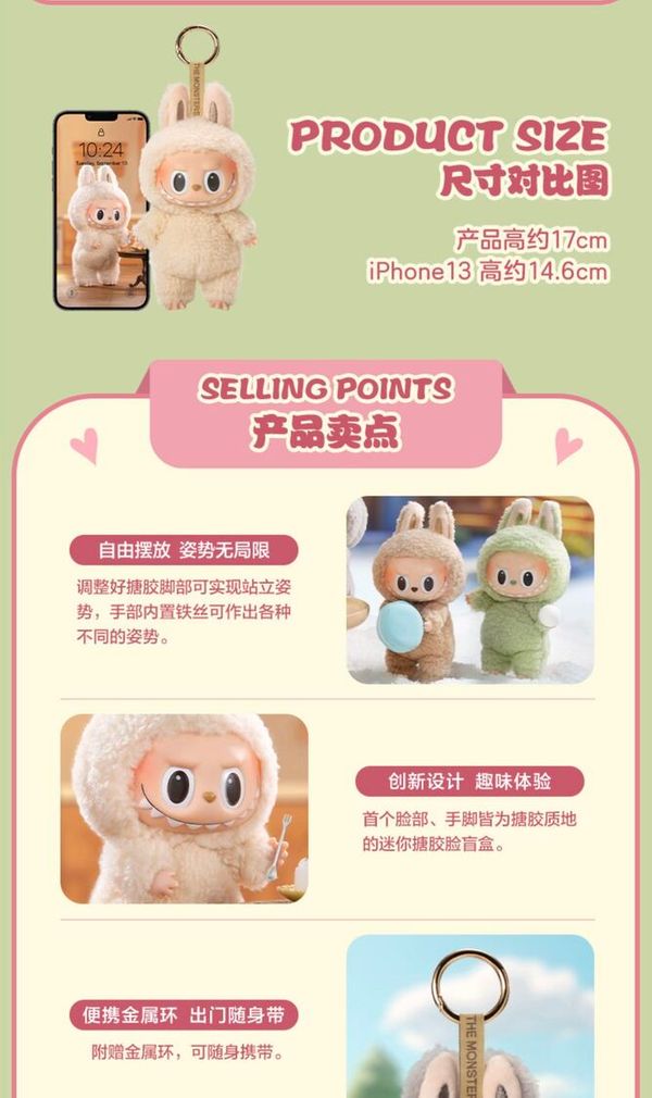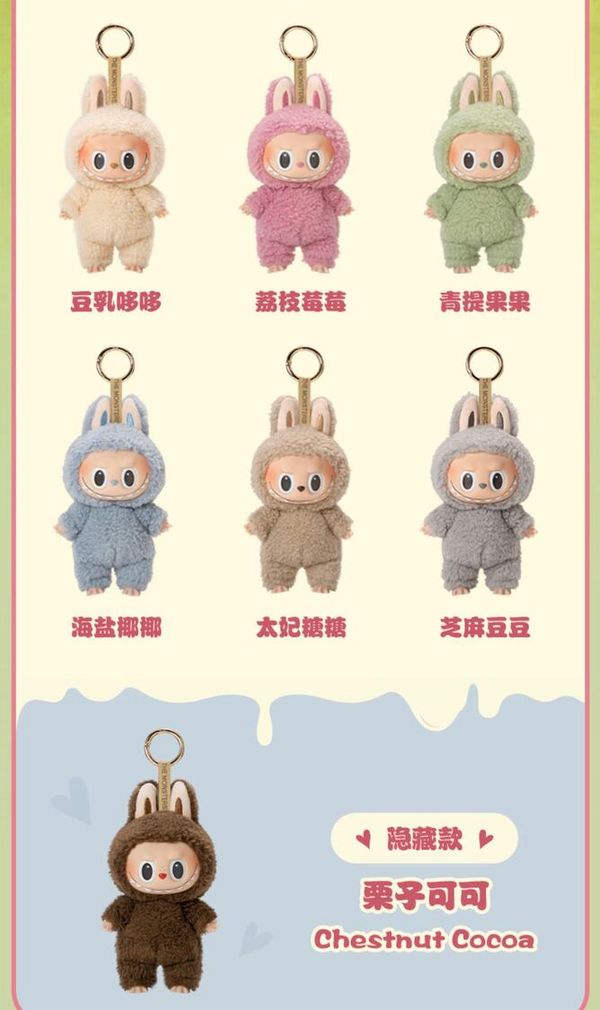 有六款可愛造型:豆乳哆哆、荔枝莓莓、青提果果、海鹽椰椰、太妃糖糖、芝麻豆豆,軟乎乎超治癒。掛在包包上或當擺件都超甜,直接把萌趣拿捏~