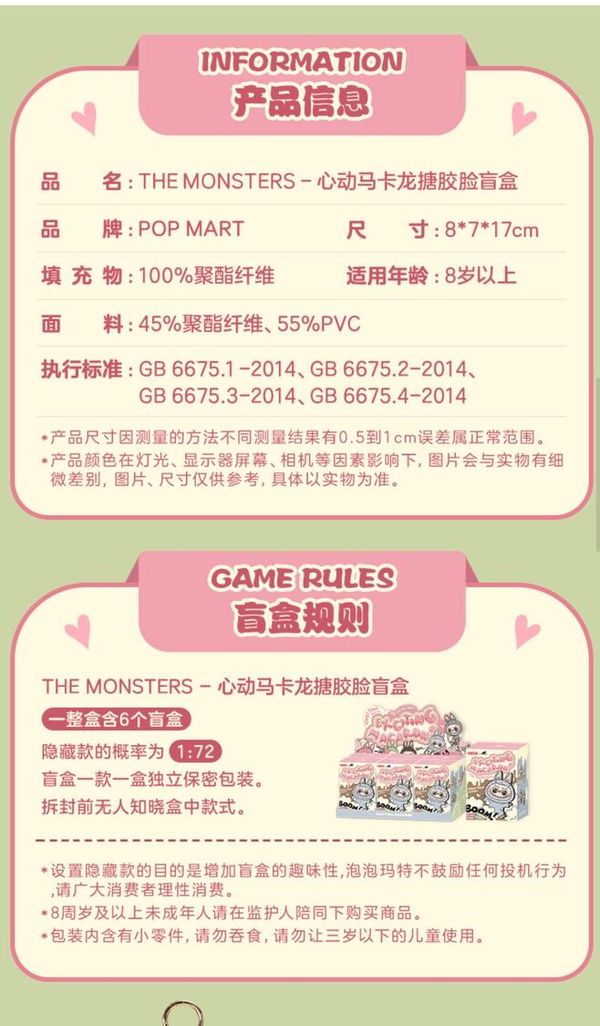 THE MONSTERS-心動馬卡龍塘膠臉盲盒 隨機發貨