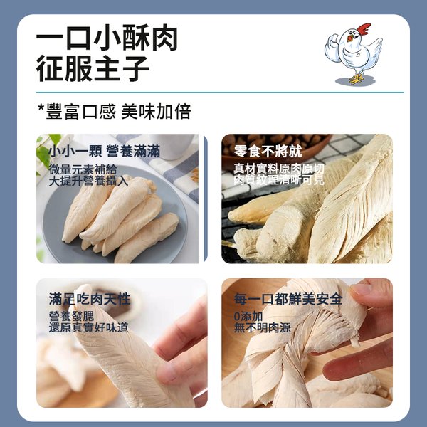 貓狗合用,全天然小食 ,採用人類食用等級肉類製作,鷄胸肉含豐富蛋白質 鈣質 維他命,對眼睛 心臟 腦部有幫助,含有皮膚所需之微量元量 礦物質鹽