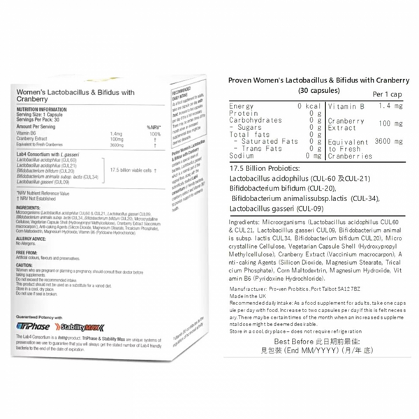 英國 PROVEN® 女士專用益生菌 + 蔓越莓 3600 - 是專為女性而設的益生菌配方,有效提升腸道及私密處的防禦能力。