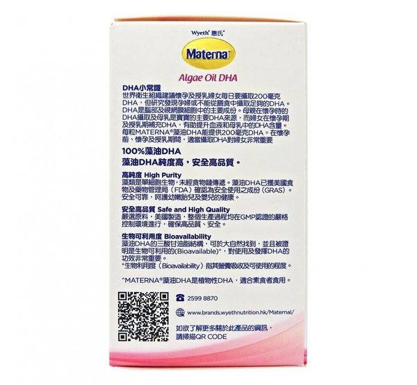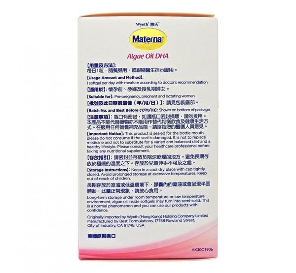 藻油DHA丸 Materna 30粒/膠囊【香港行貨】Wyeth