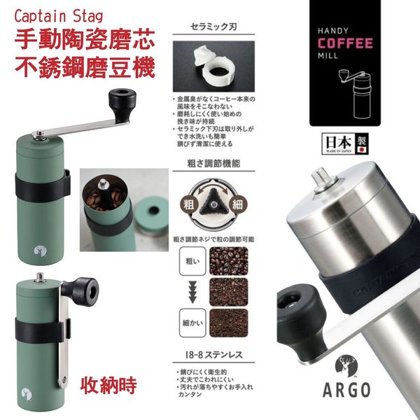 鹿牌-(日本製) 手動陶瓷磨芯不鏽鋼磨豆機 (綠色)