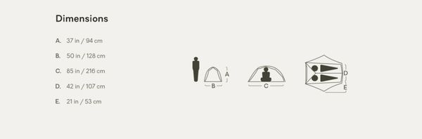 Material 物料: (Canopy 天幕) 不透光網布 No-see-um Mesh, (Fly) OSMO, (Floor 營底) 0D OSMO Ripstop 防撕裂面料(1200mm), (Rainfly) 0D OSMO Ripstop 防撕裂面料(1200mm)