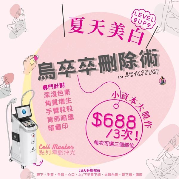夏天黎緊啦😱腋下烏卒卒、手踭、膝頭一粒粒、大髀內側一達達?💣點忍?!各位靚靚想著Low-cut、小背心、BIKINI等show off美態👙,一定要趁早啦!改善身體皮膚的💡色素💡粒粒💡粗糙等問題,💯締造白滑肌膚,無慮迎接初夏!