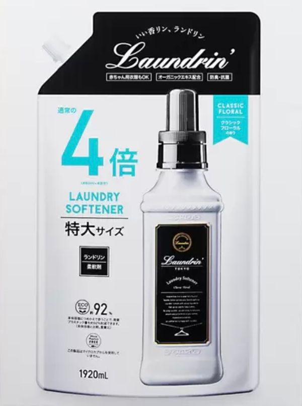 Laundrin-香水衣物柔順劑經典花香白色(補充裝)1920ml