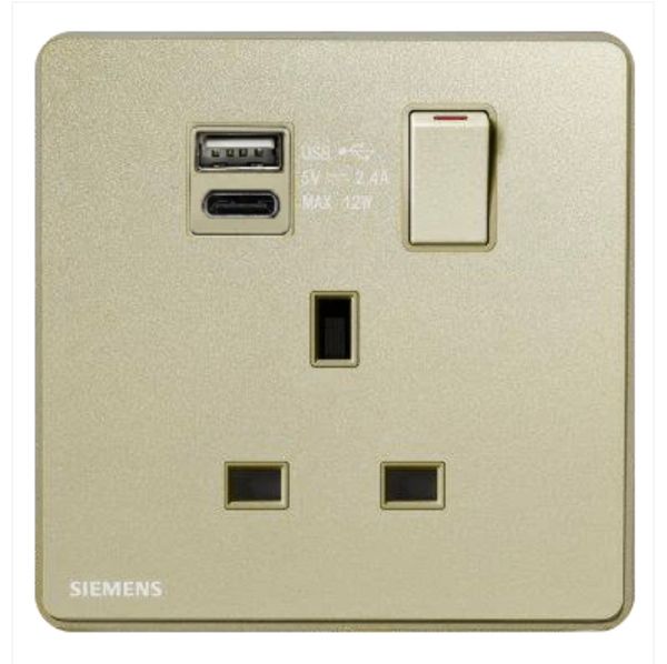 西門子-Arina13A單位開關插座帶USBTYPEC插頭香檳金
