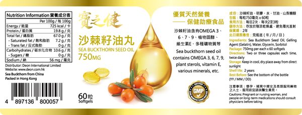 寶之健 - 沙棘籽油丸 (750mg x 60粒)