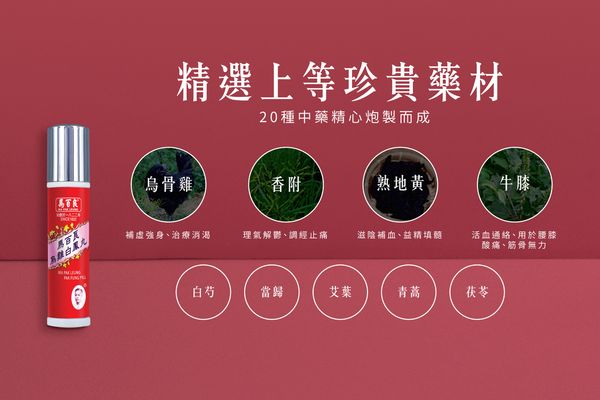 主要成份:烏雞骨、香附、熟地黃、艾葉、青蒿、茯苓、地黃、牛膝、柴胡、牡丹皮、知母、川貝母、秦艽、地骨皮、乾薑、燕窩、蜂蜜。