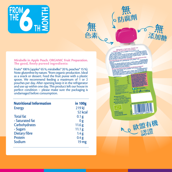喜寶 - 有機果蓉 - 黃金梅蘋果蜜桃果蓉唧唧裝 100克 適用年齡: 6個月或以上 (最佳食用期: 2026年1月7日)9062300136972