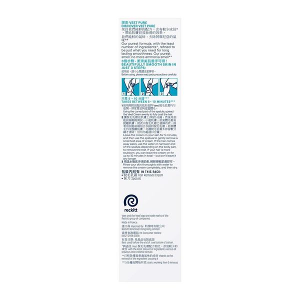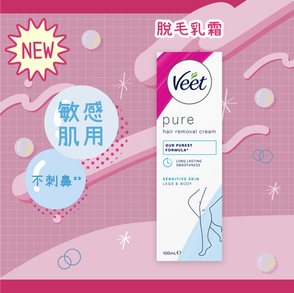 Veet®脫毛乳霜作用於毛髮根部,即使較短毛髮也可有效去除,為你帶來長達一周的光滑肌膚。Veet敏感肌膚適用配方,蘊含具舒緩功效的蘆薈和維他命E成分,不僅為你帶來如絲光滑的柔潤肌膚,亦可令再生毛髮更柔軟。