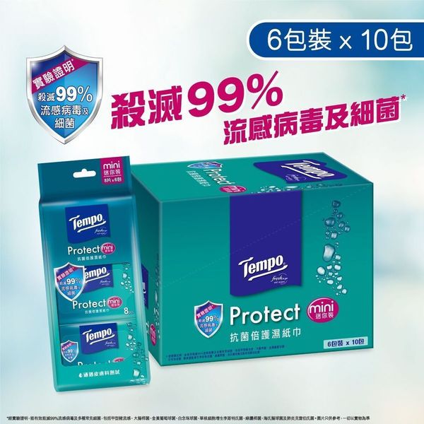 - 實驗證明,Tempo抗菌倍護濕紙巾能有效殺滅99%流感病毒及多種常見細菌,包括:甲型豬流感(H1N1)、大腸桿菌、金黃葡萄球菌、白念珠球菌、單核細胞增生李斯特氏菌、綠膿桿菌、海氏腸球菌及肺炎克雷伯氏菌。