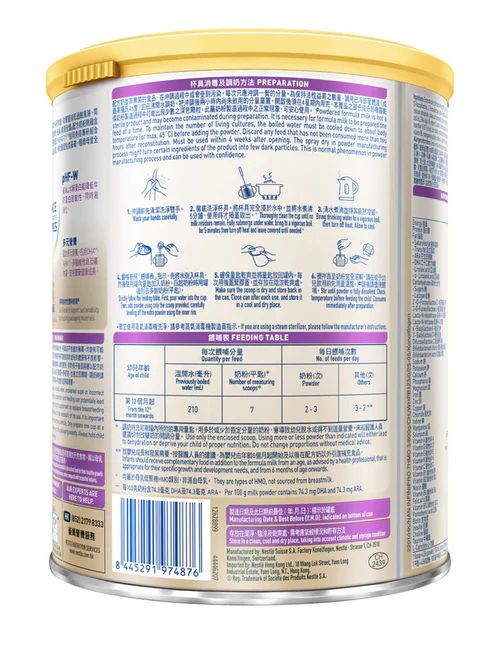 ^^每100克奶粉含74.3毫克DHA及74.3毫克ARA。