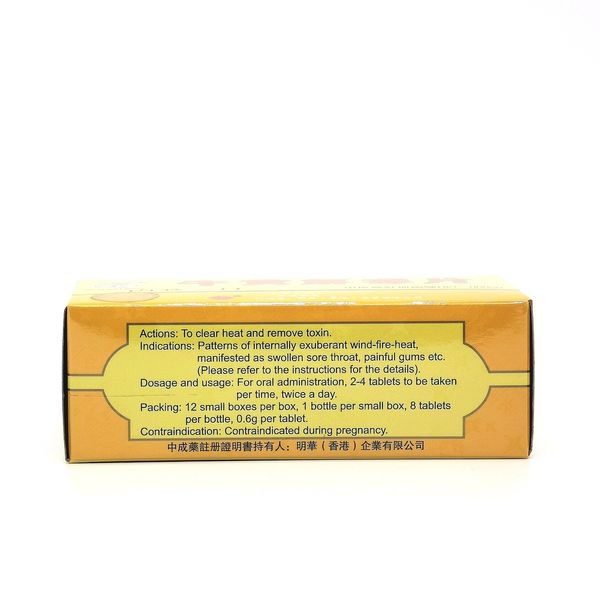 主治 火熱內盛,咽喉腫痛、牙齦腫痛等(詳見產品說明書)。
