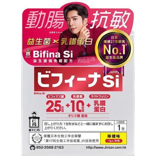 日本森下仁丹Bifina Si 晶球益生菌強免疫配方以比菲德氏菌為主,配合珍貴乳鐵蛋白LF,特別針對平衡免疫系統、抗感染、調理過敏體質。益生菌及乳鐵蛋白LF都容易被胃酸殺死或破壞,令他們無法在腸道發揮功效。森下仁丹用了超過20多年時間,研發「3層耐酸性晶球技術」,確保益生菌及乳鐵蛋白LF可以直達腸道,發揮功效,產生協同效應,進一步改善腸道免疫力。