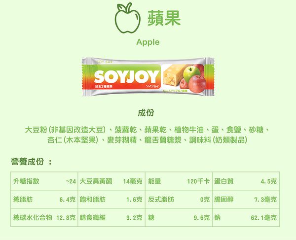 SOYJOY - 大豆果脆棒(蘋果味)#低 GI #無麩質 #0反式脂肪 #純素 #早餐 #下午餐 #OL必備8997035600188