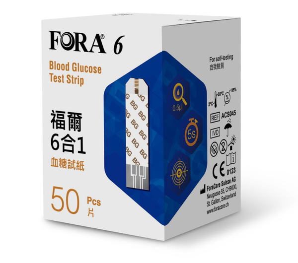 福爾-Fora 6 血糖試紙 每盒50張 糖值超標 需配合FORA6 六合一 藍牙血糖機使用 尿糖試紙血糖紙