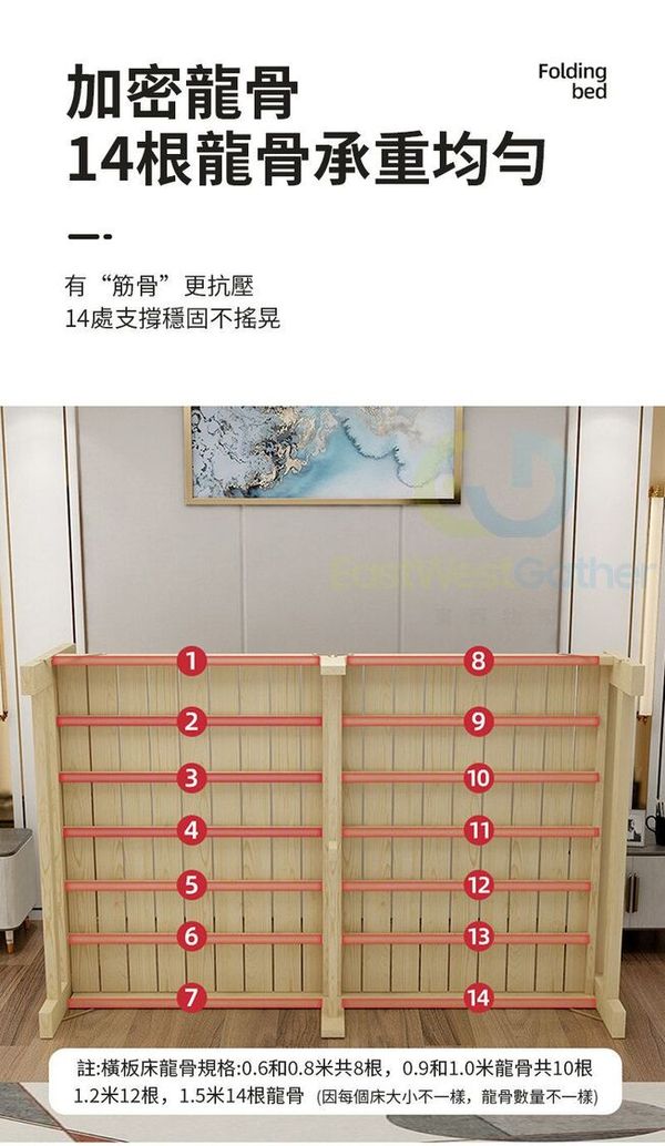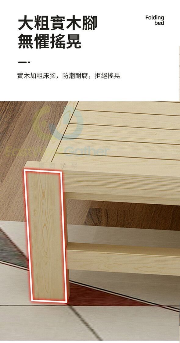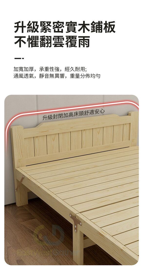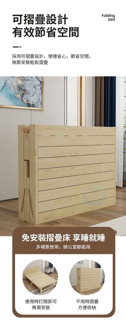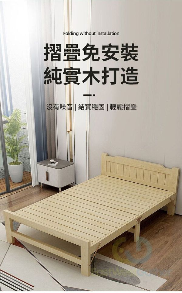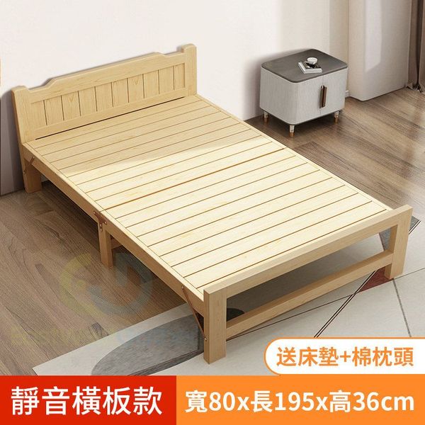 東西物聚-包安裝送貨【靜音橫板加固】鬆木0.8米/送床墊+棉枕頭 摺疊床 午休床 家用床 實木床