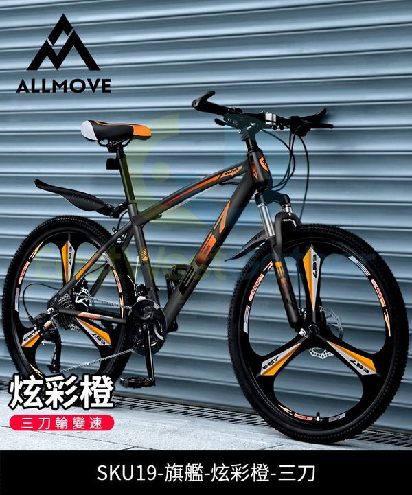 東西物聚-包安裝送貨-[27.5英寸]-21速-旗艦-炫彩橙-三刀輪 -越野單車 變速自行車 腳踏車 山地車