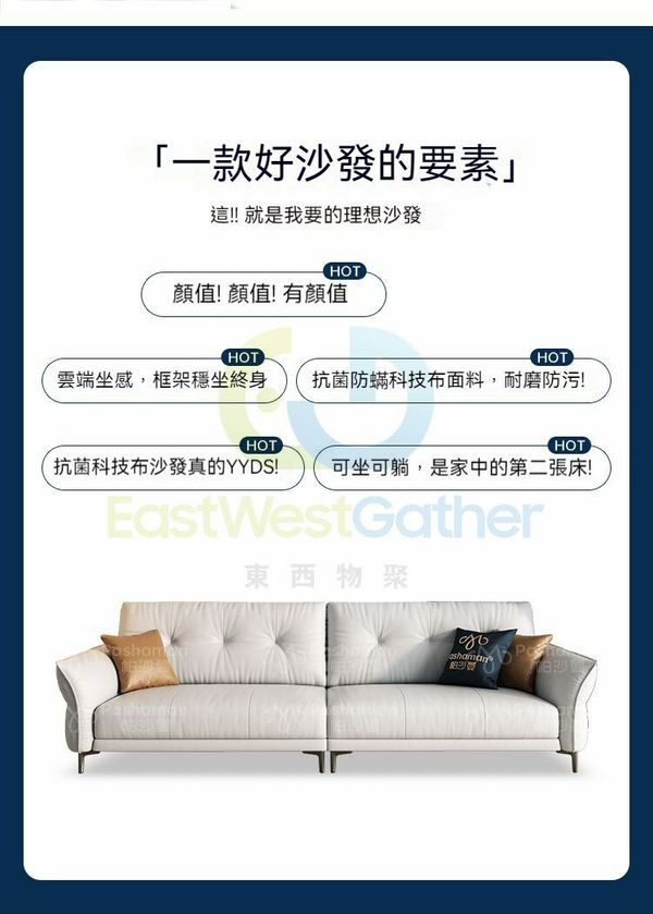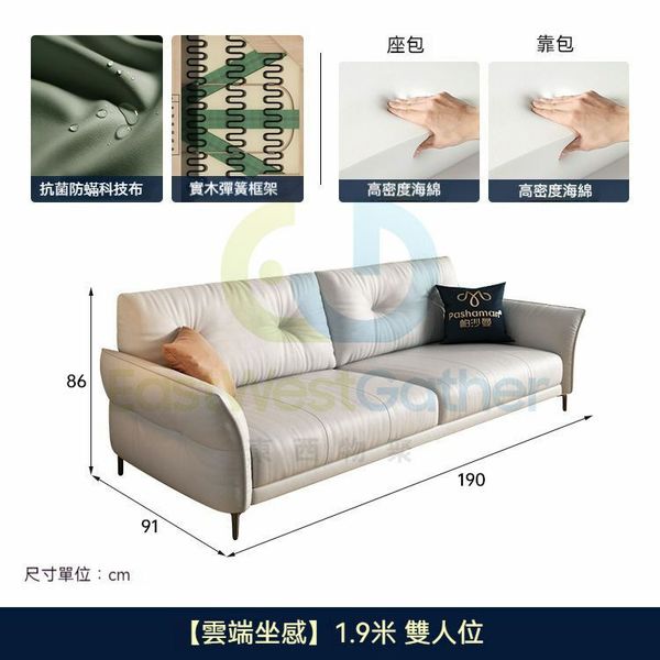 東西物聚-包安裝送貨-1.9m【高密度海綿】-尊享抗菌防蟎科技布-雙人位-梳化沙發