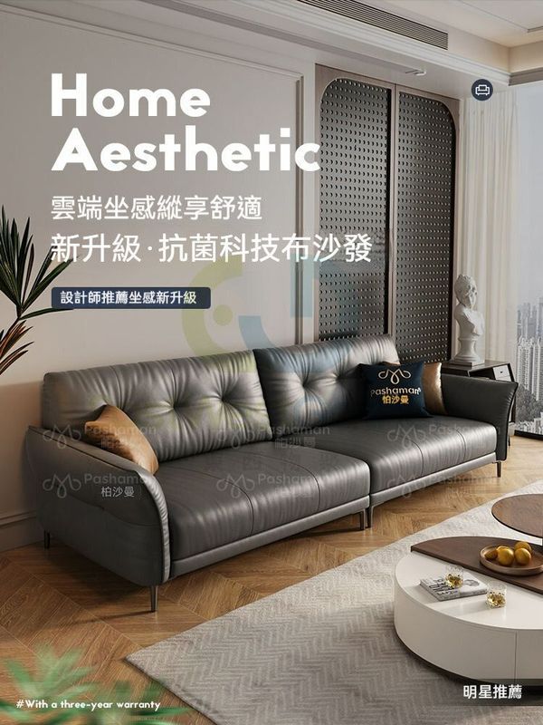 帕沙曼布藝沙發科技佈防水防汙新款客廳小戶型意式三人位直排沙發