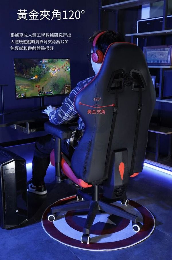 款式4:【固定扶手】【機甲】擱腳+可躺+超纖皮+定型棉+三級氣杆 下單備註顏色默認發朱紅