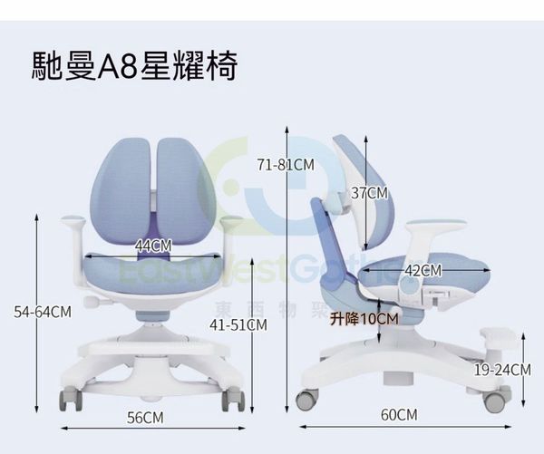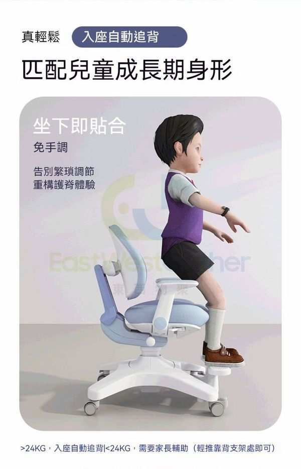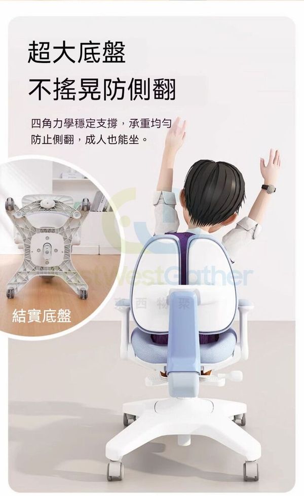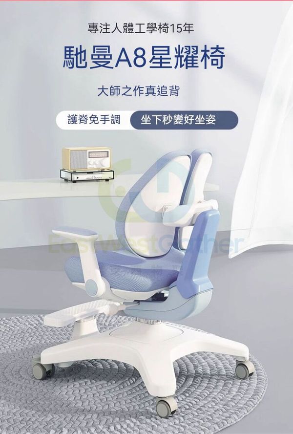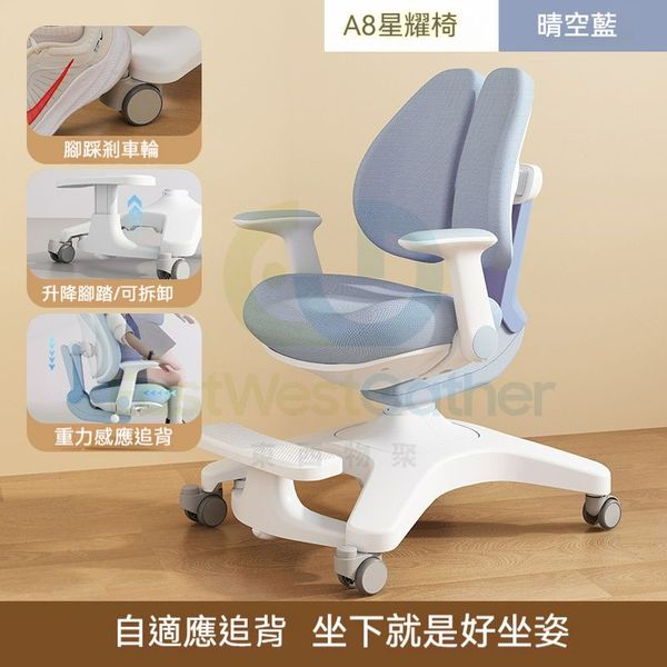 東西物聚-包送貨-A8星耀椅pro【重力自動追背】-晴空藍-兒童椅 學習椅 寫字椅 坐姿矯正椅 書桌椅