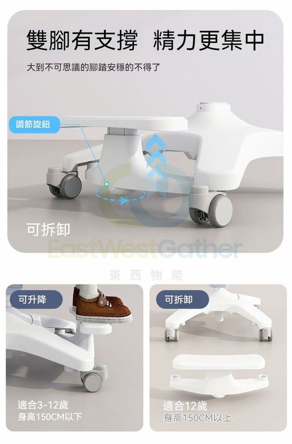 高度随心調,不挑身高,不挑桌:多維度坐深/坐高調節,匹配兒童骨骼發育適合90-180CM身高