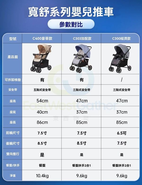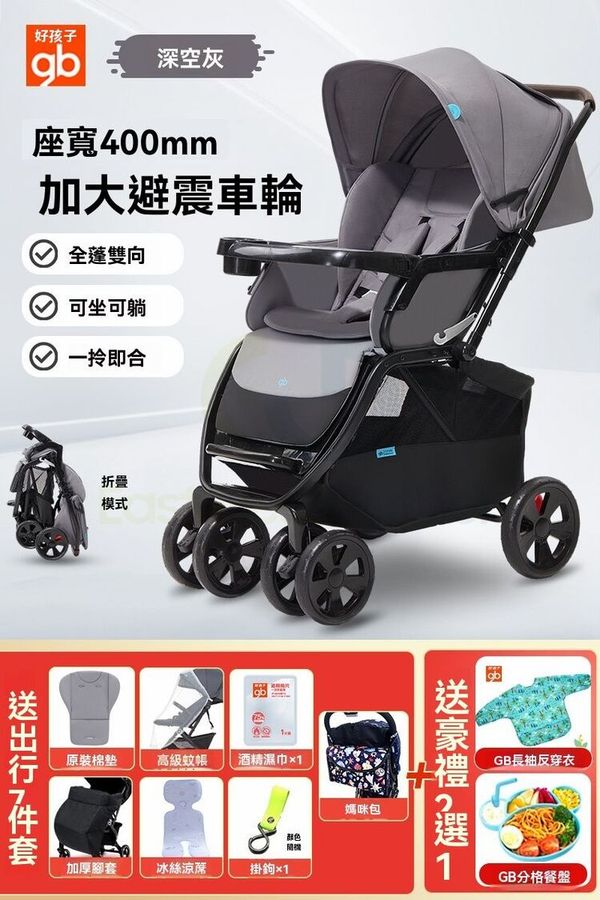 東西物聚-包送貨-【加大餐盤/C400豪華款】深空灰-嬰兒車 嬰兒手推車 折疊bb車
