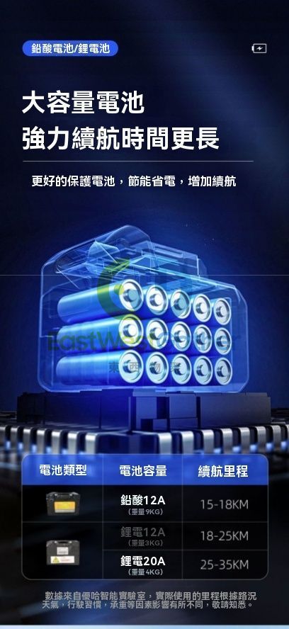 鉛酸電池/鋰電池,大容量電池,強力續航時間更長,更好的保護電池,節能省電,增加續航