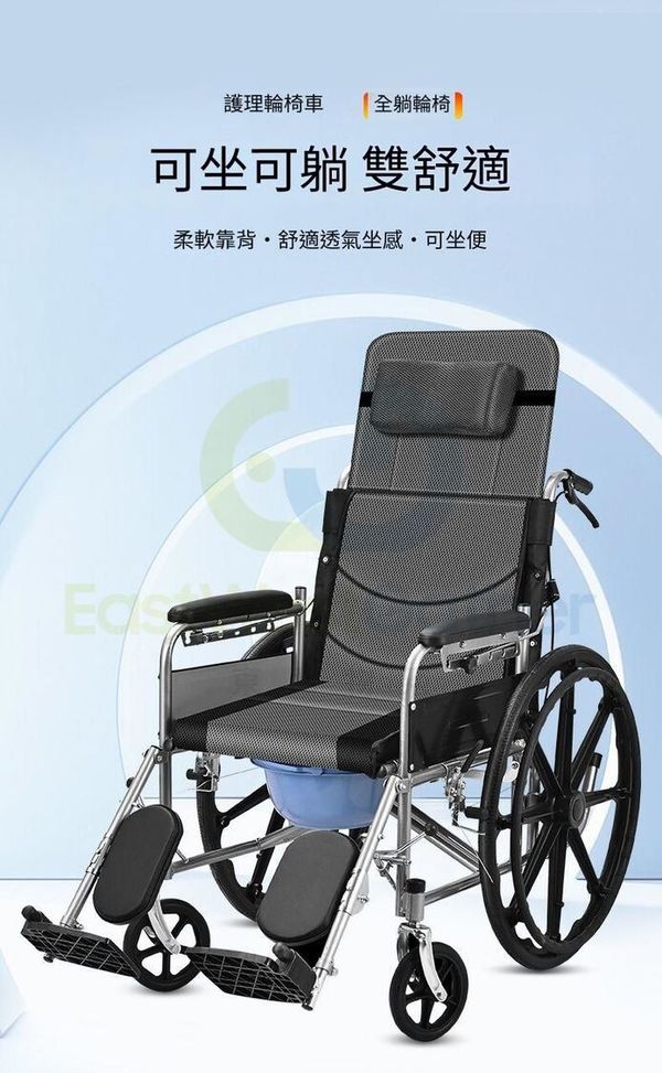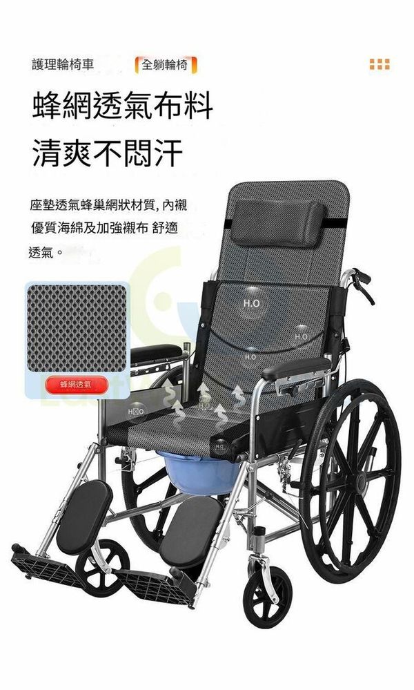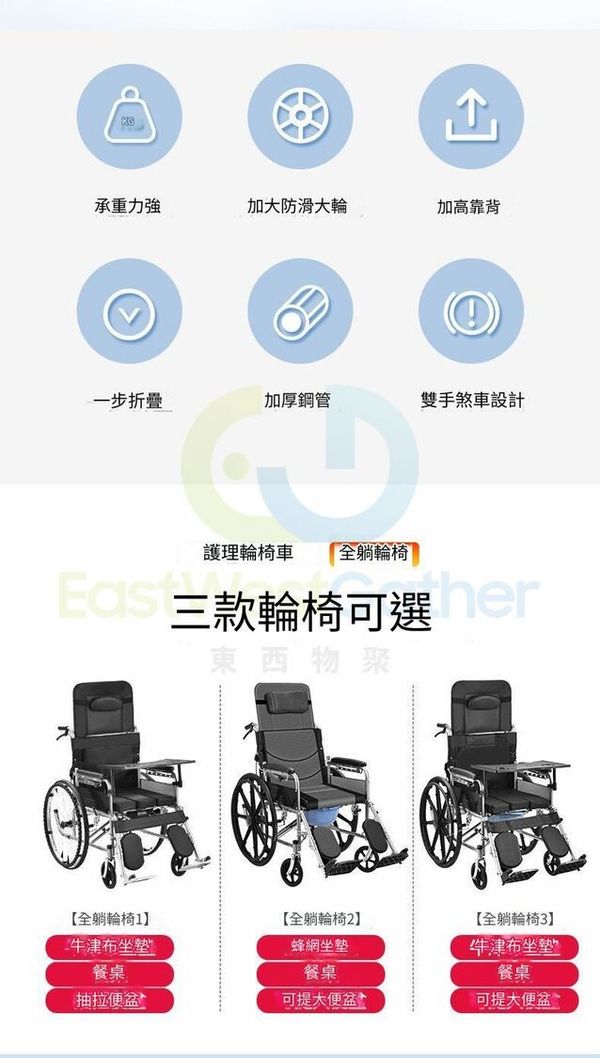 東西物聚-包送貨 - 可折疊輪椅【液壓款全躺一體輪】雙層坐墊送餐桌板 手動輪椅 全躺輪椅 免安裝 老人代步車