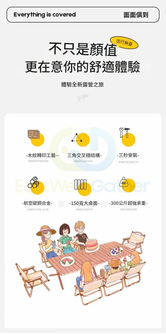 東西物聚-包送貨 - 折疊桌子 150cm加厚【黑色特大號】+月亮椅8把(贈送收納袋) 可擕式露營桌椅 户外野炊裝備