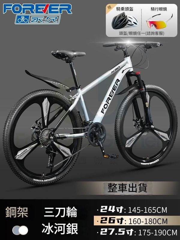東西物聚-單車 24英寸 21速 鋼架三刀輪-冰河銀[整車裝好發貨] 包安裝送貨-自行車 成人腳踏車 山地車