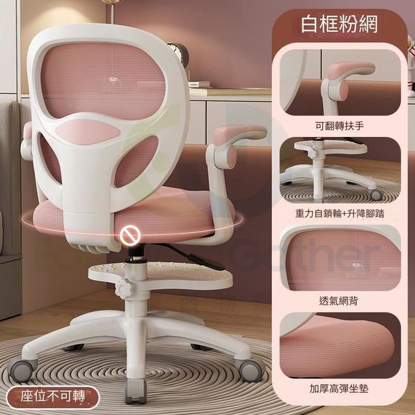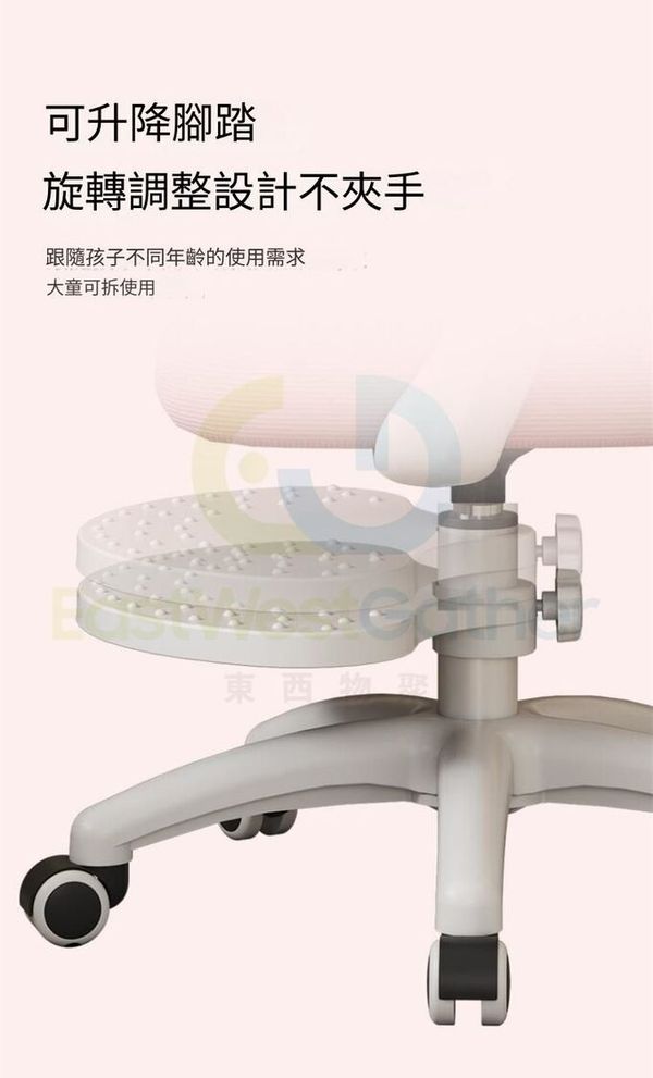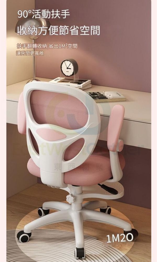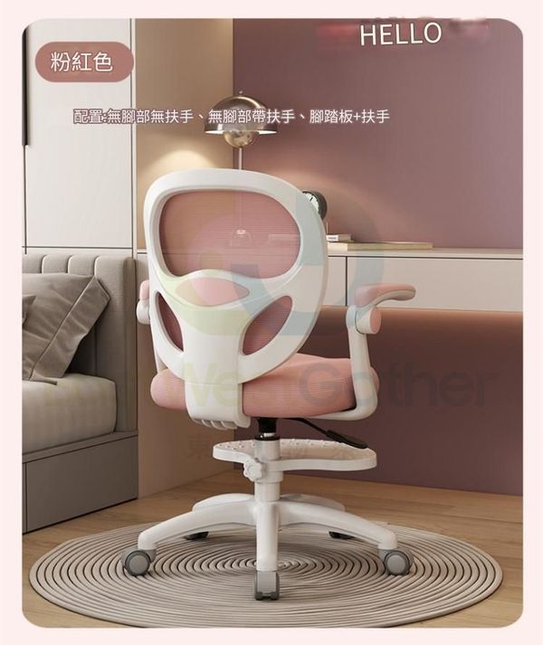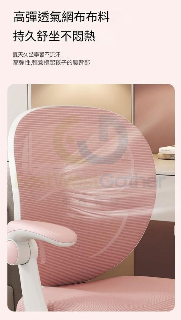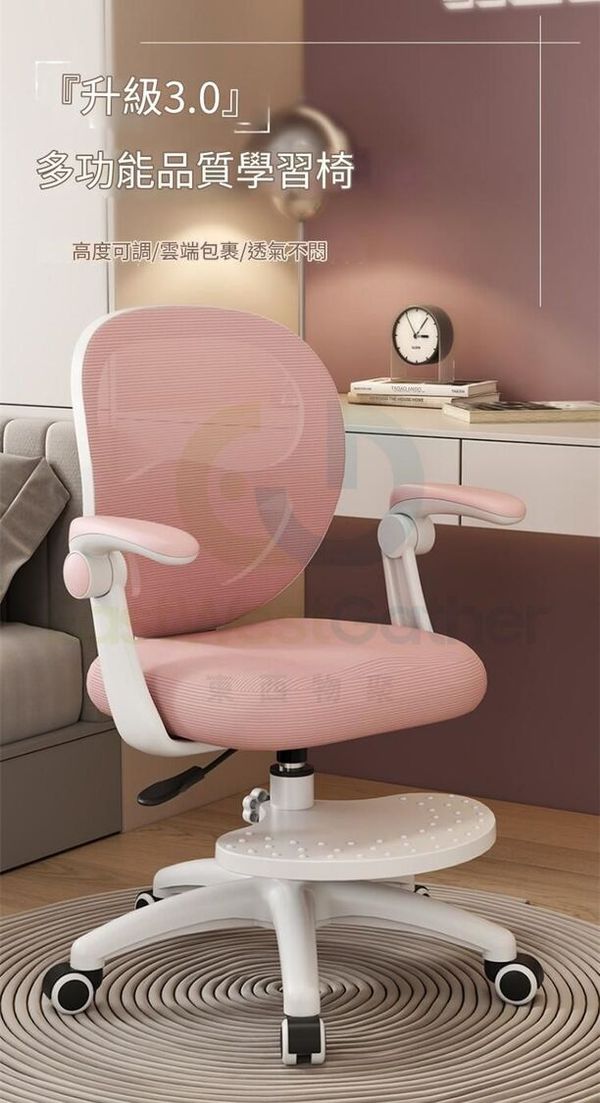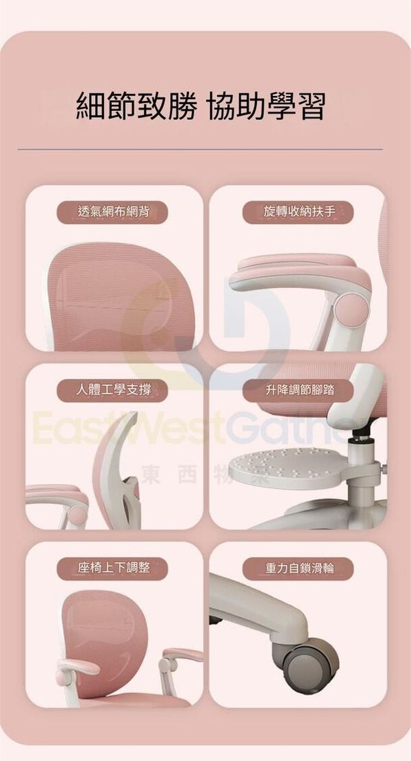 東西物聚-包送貨-可升降調節兒童學習椅 粉色+3級氣杆+扶手+脚踏+重力輪+不可轉 電腦椅 電競椅 升降椅 辦公椅 寫字樓椅子
