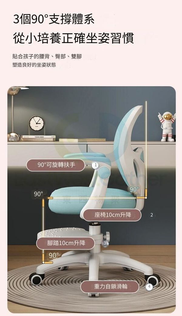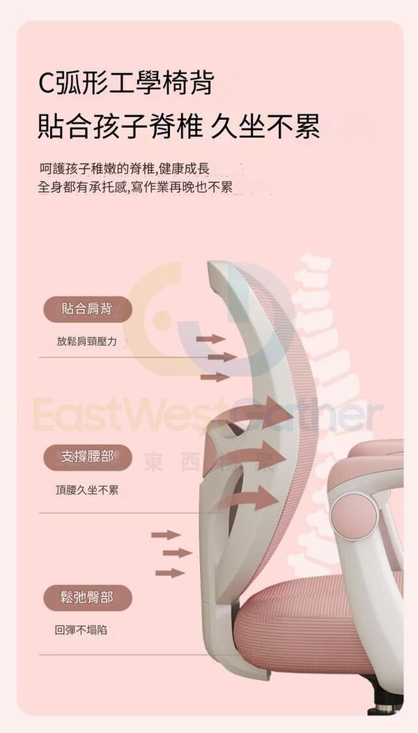 C弧形工學椅背貼合孩子脊椎,久坐不累,呵護孩子稚嫩的脊椎,健康成長全身都有承托感,寫工作再晚也不累