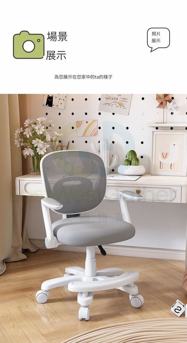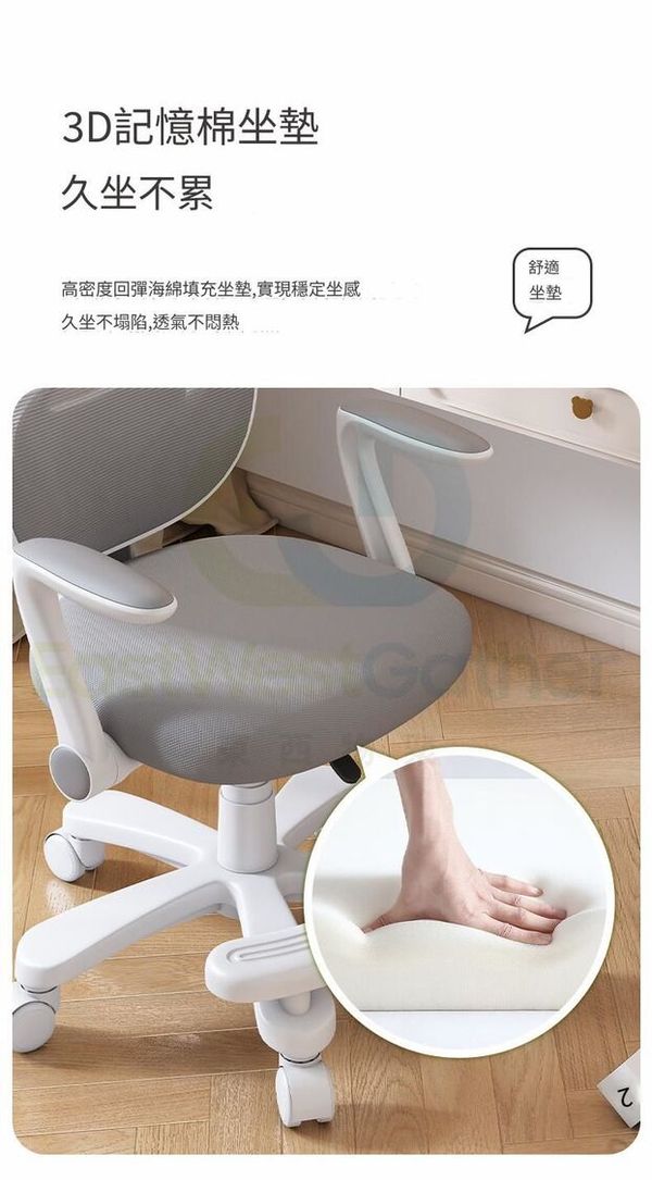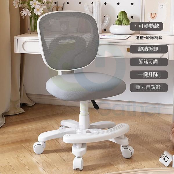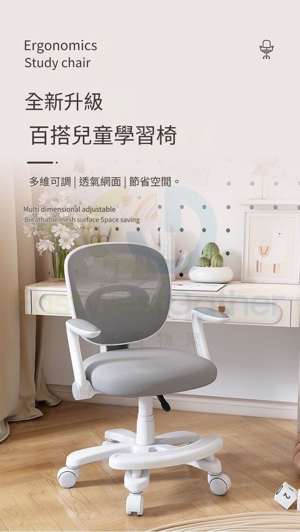 東西物聚-包送貨-可升降兒童學習椅椅子灰色-可轉動+脚踏板+重力輪 電腦椅 電競椅 學生凳 辦公椅 寫字椅