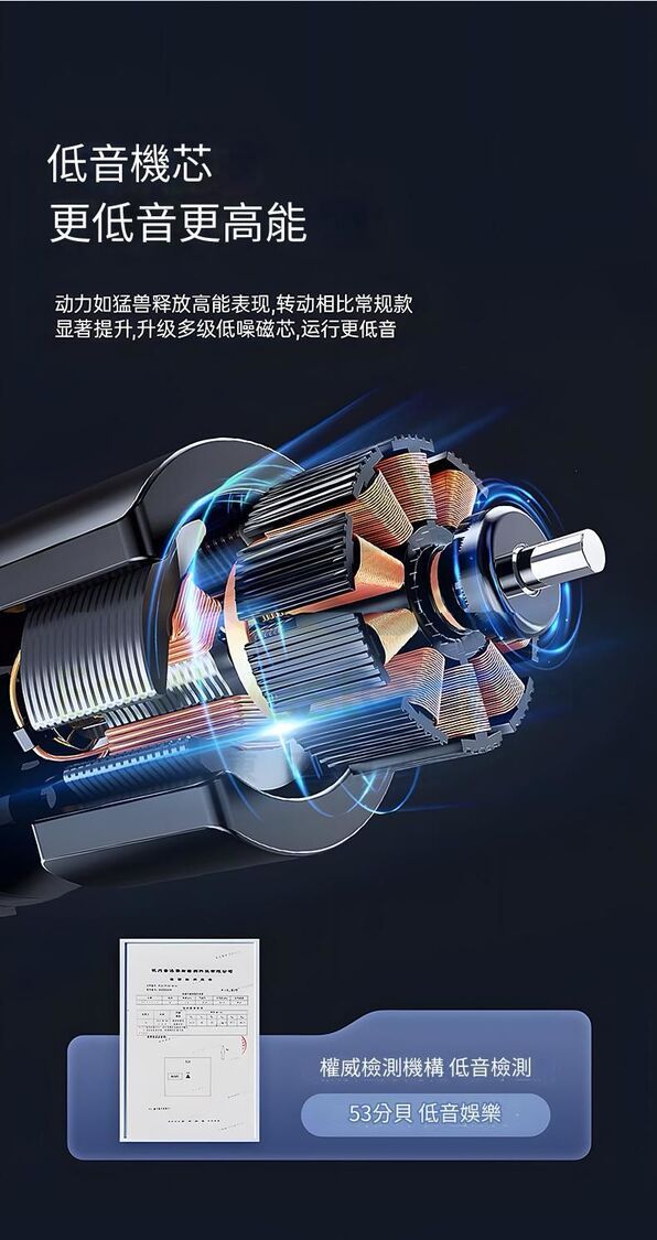 陞級多級低噪磁芯,運行更低音,動力如猛獸釋放高能表現.轉動相比常規款顯著提升